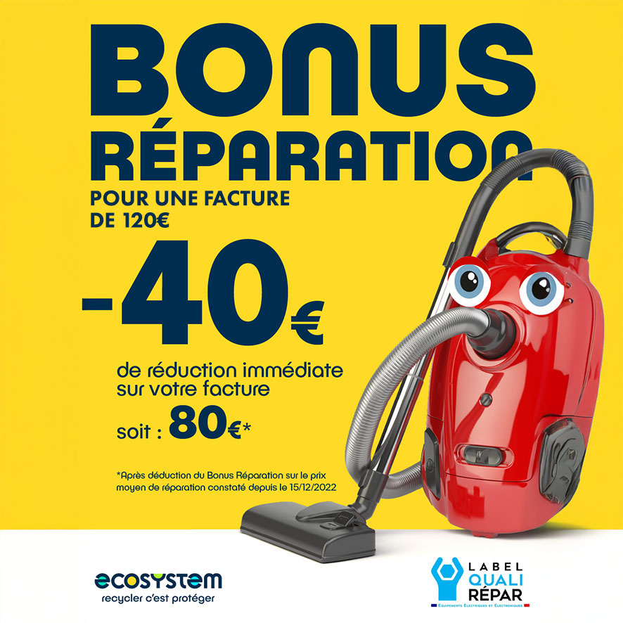 Saviez-vous que grâce au dispositif national Bonus Réparation, vous pouvez faire réparer vos petits et gros appareils électroménagers à moindre coût ?